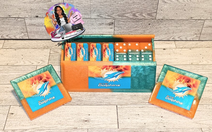 Dominos & Carry Box are all handmade with Epoxy Resin. This set comes with 4 free drink coasters.