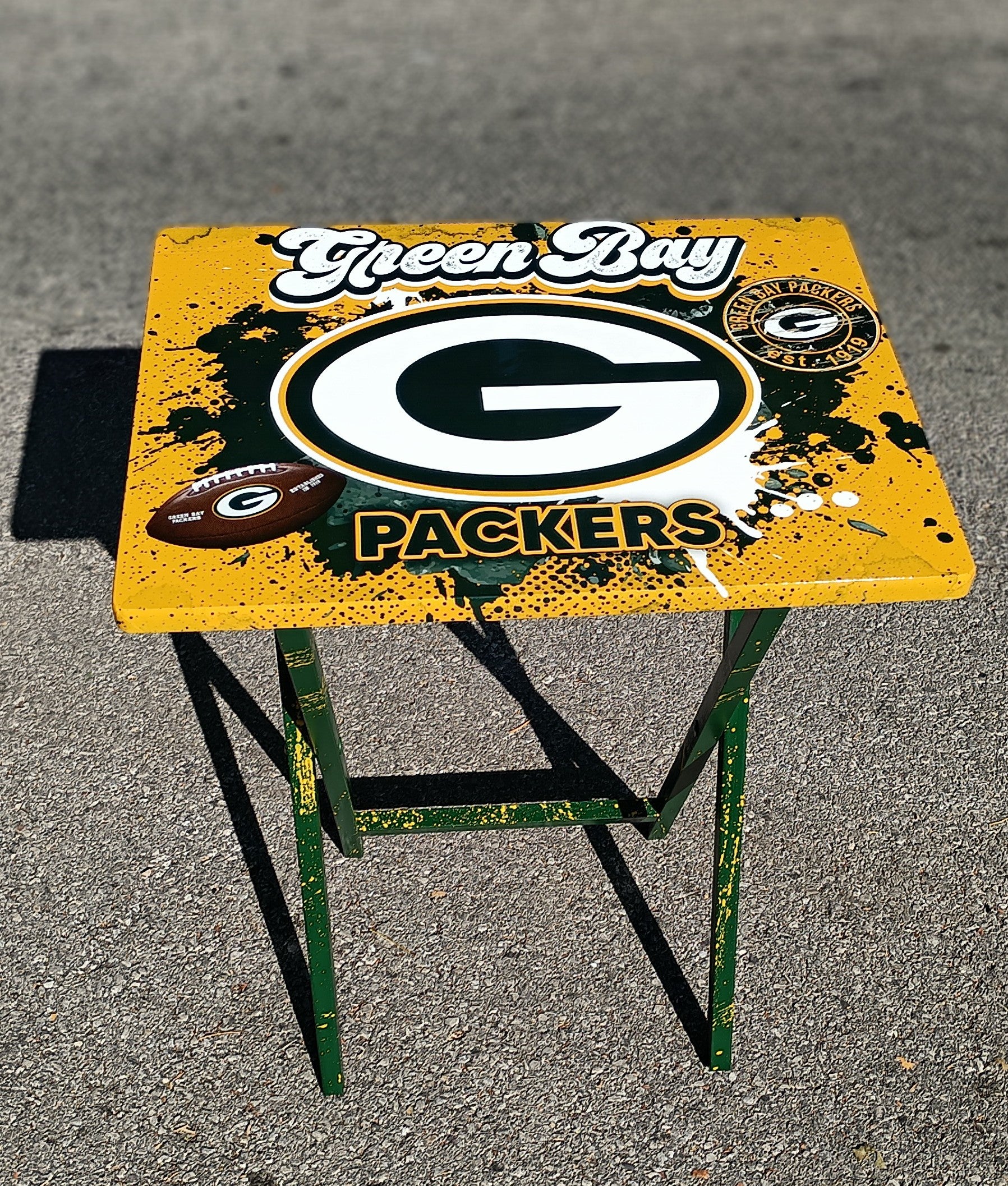 Tray Table is Wood material with durable wrap/cast vinyl on top of the Table.