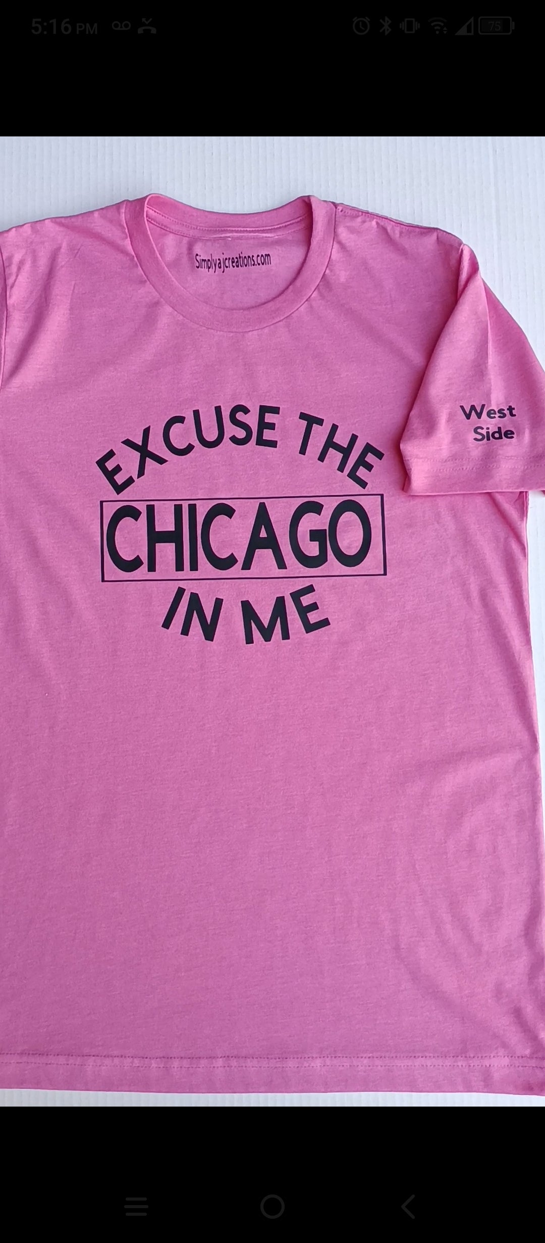 To add the City you would like yours to be and the color you would like the words to be please add this item to your cart and in the Notes/Order Special Instructions box enter the city you want in the Box (in place of Chicago) & color you would like the words to be. If you want City/side of town on sleeve please include that in box as well