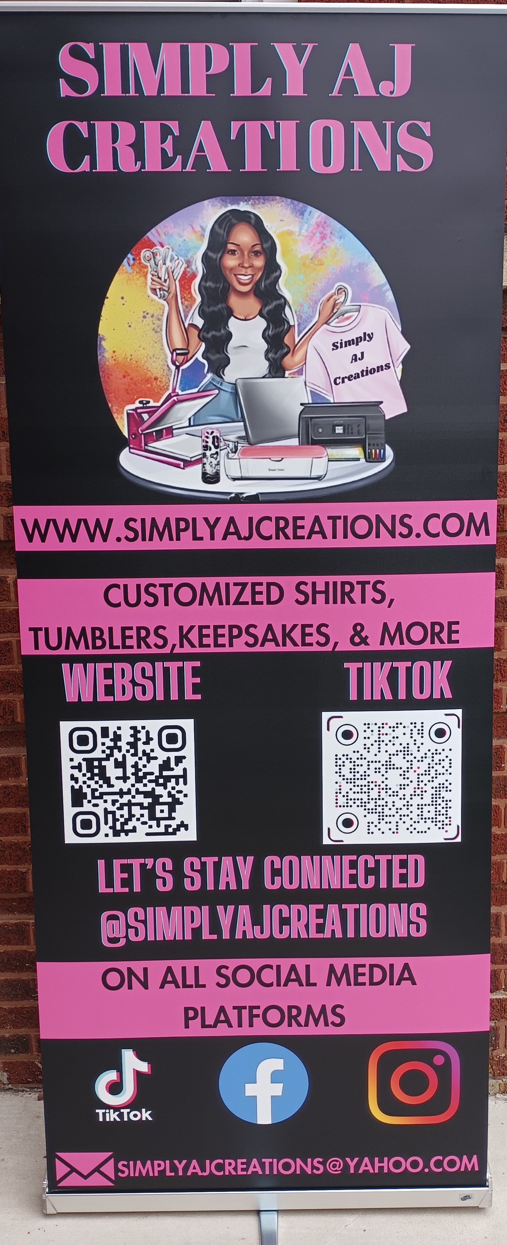If you would like your own Logo added to the banner please send to email below along with what you would like on the banner, i.e website, email address etc, color scheme, and any other clear files you would like added to banner. We'll reach back out to you within 48 business hours for you to approve the design. You can also enter notes in the Order Special Instructions box before checking out. Please Send logo to Email simplyajcreations@yahoo.com