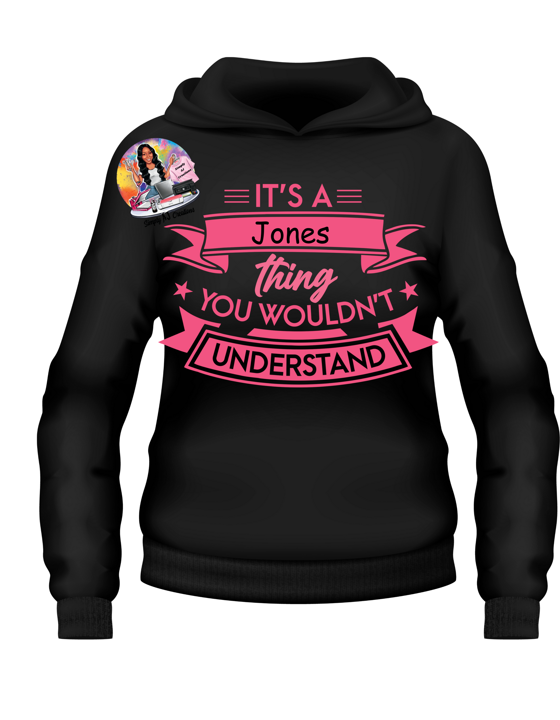 You can choose the writing color of your choice. (Shown is Black Hoodie with Pink Writing writing)